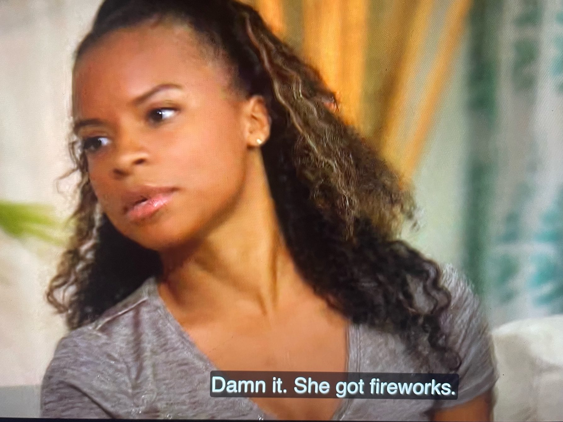 At the hotel the girls are sitting in their suite and hear explosions in the distance. Aly says dryly, “Damn it, she got fireworks.” I actually lol’ed. Zach and Kat make out.