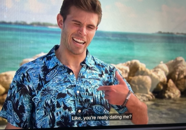 We start this week with the remaining 14(?) girlfriends sitting in the living room of the Bachelor mansion – just absolutely spent from the pool party from hell. Genevie is still in a sling with zero explanation as to what happened, but she says, “the vibe is lighter now.” Mostly because of the pain killers, but also because that a**hole Christina is gone. Host Jesse and his massive teeth announce that this week that they are all going to the Bahamas, who’s tourism industry is ready to welcome Zach and his brothel with open arms as they’re still recovering from the detrimental impacts of the cruise ship industry being shut down during COVID as well as the Fyre Festival disaster of 2017. I’d also like to point out that they are visiting during the peak of hurricane season.
